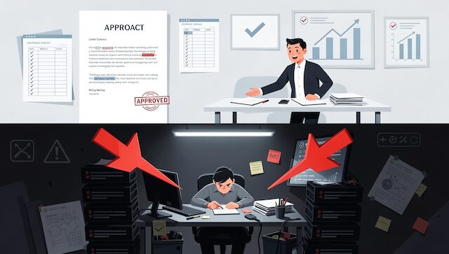 確認を急かしても曖昧な回答しか返ってこない場合、参画後に担当範囲や責任分界を確認しようとしても、同じことが繰り返されます。参画前に答えられないエージェントが、参画後に急に答えられるようになることはほとんどありません。むしろ、現場に入ってから「そこまでやる前提ではなかった」「その認識はありませんでした」と言われ、曖昧だった部分だけがこちらに押しつけられる形になりやすくなります。