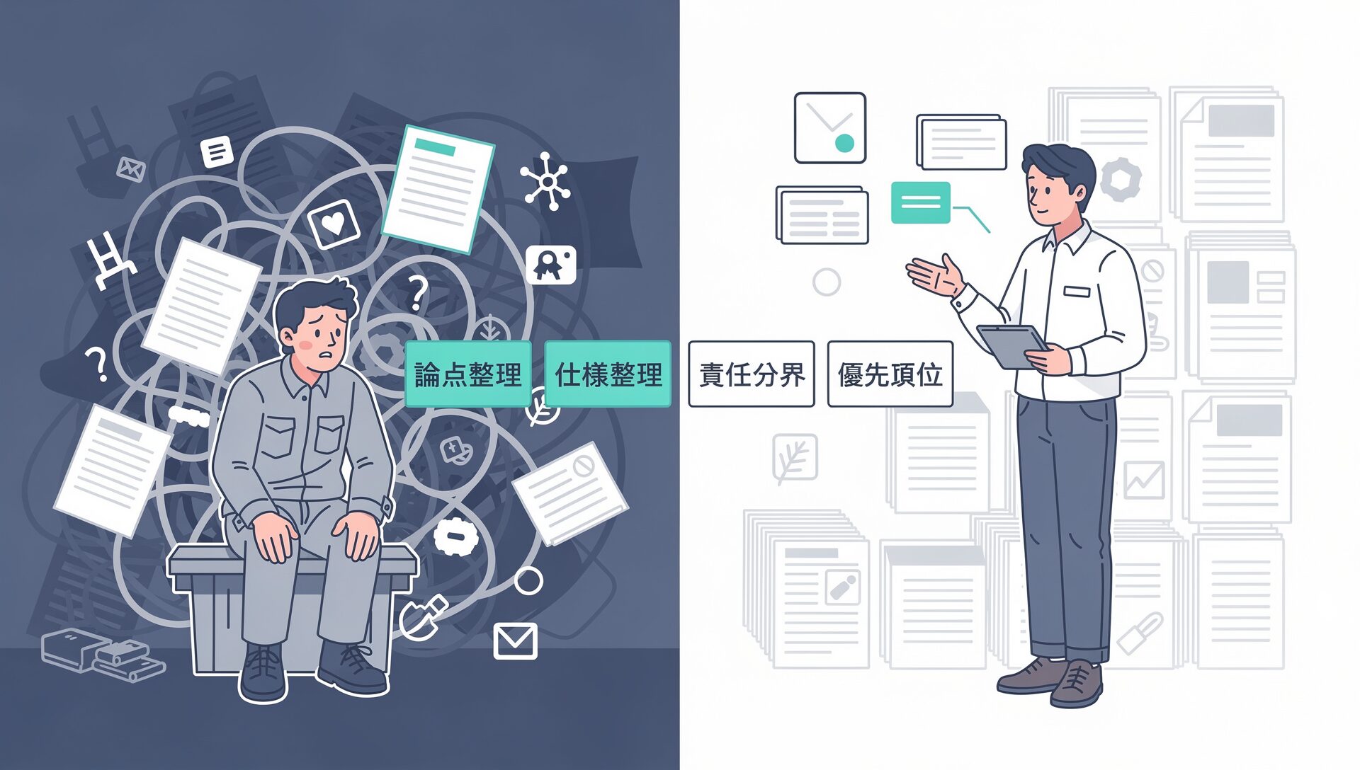 HOME > 現場サバイバル戦略 > SES現場の実情 > SES現場の実情 SES現場では、経験年数に関係なく同じ問題が繰り返されます。仕様が固まらないまま作業が始まる、責任の境界が曖昧なまま放置される、誰も教えてくれないのに即戦力として扱われる。このカテゴリでは、そうした現場の実情を20年以上の経験をもとにそのまま書いています。 ■ このカテゴリで扱う内容 現場に入ってから気づいても遅い構造的な問題を扱っています。「こういうものだ」と受け入れてしまう前に、一度読んでみてください。あなたの現場で起きていることが、ここにあるかもしれません。