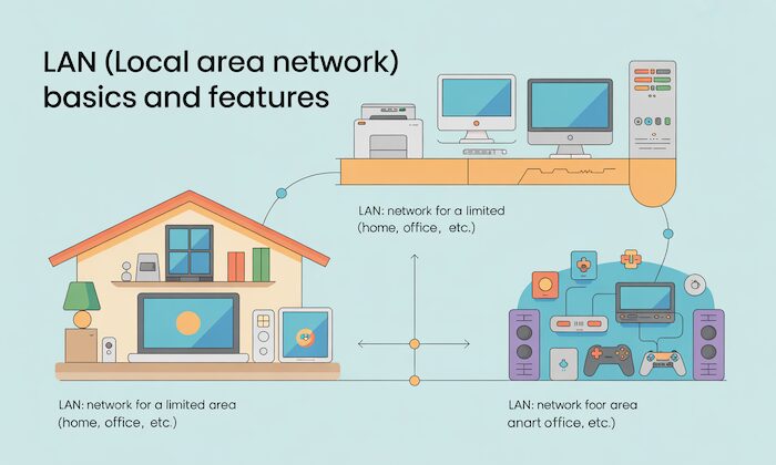 LANは、家庭やオフィスなど、限られたエリア内でデバイスを接続し、情報を共有するためのネットワークです。Wi-FiもこのLANの一部として使われます。