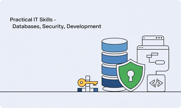 📌 システム開発、データベース、セキュリティなど、実践的なIT技術を習得する。