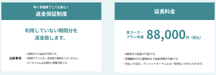 また、学習期間を延長したい場合には、延長料金として88,000円(税込)で追加受講が可能です。