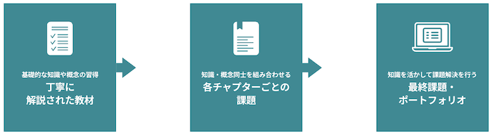 まず知識をインプット(Input)し、その内容を実際に手を動かして試す(Challenge)、最後に振り返りと改善(Evaluation)を行う。この3段階を高速で繰り返すことで、理解が浅いまま進んでしまうことを防ぎ、知識を確実に定着させます。