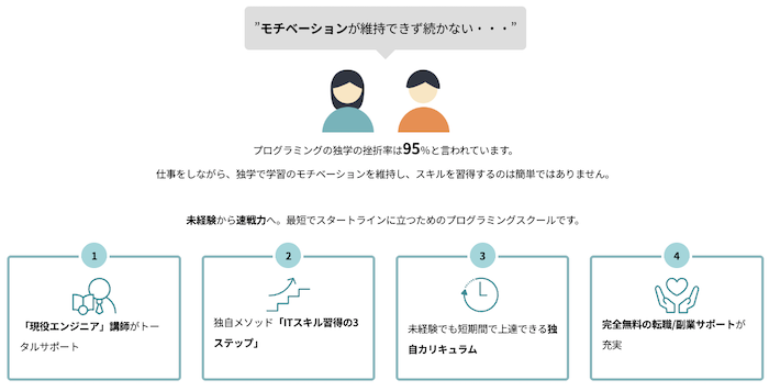 特にIT未経験から転職を目指す人にとって、現場のリアルなフィードバックを受けながら進められるのは大きな安心感につながります。