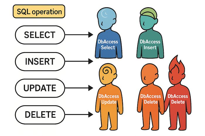 SQL種別は「DIOの魂」で、DbAccessXxx クラスは「憑依される肉体」。DbAccessFactoryは「魂を運ぶスタンド」だと考えれば、内部で何が起きているか直感的に理解しやすくなります。