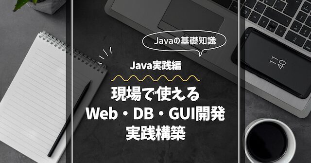 実践編では、ServletやJDBC、JavaFX、Spring Bootを活用し、Web・DB・GUI開発を通じて現場で使える実装力を養います。
