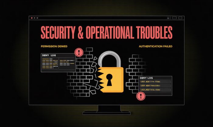 セキュリティ・運用系のトラブルは、アクセス制御の不備、認証エラー、ポリシー設定の誤りなどが中心です。外部からの不正アクセスや内部設定の漏れが原因で、システム全体に影響を及ぼすことも少なくありません。正しいユーザー管理やSELinuxの理解、ファイアウォール設定が不可欠です。