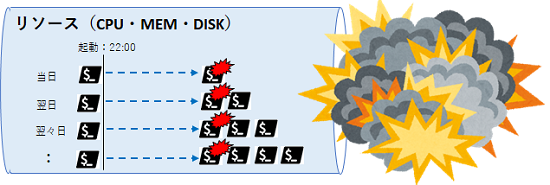 定期的に実行するスクリプトが何らかの原因により、正常に実行できずに止まってしまう(キューイング)場合、(翌日の定時などに)後から起動された同一スクリプトのプロセスは次々にOSにキューイングされて行きます。