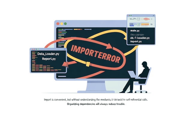 たとえば、AがBをimportし、BがAをimportしていると、Pythonはどちらを先に読み込むべきか判断できず、実行時にエラーを出します。
