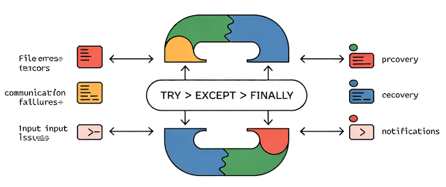 Pythonの例外処理は、「何か問題が起きたときに安全に処理を続ける」ための仕組みです。