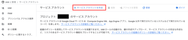 - 「サービスアカウントを作成」ボタンをクリックします。