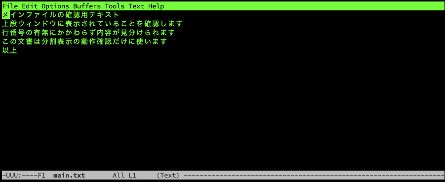 端末上でEmacsが起動し、ウィンドウ環境なしで編集が可能になります。